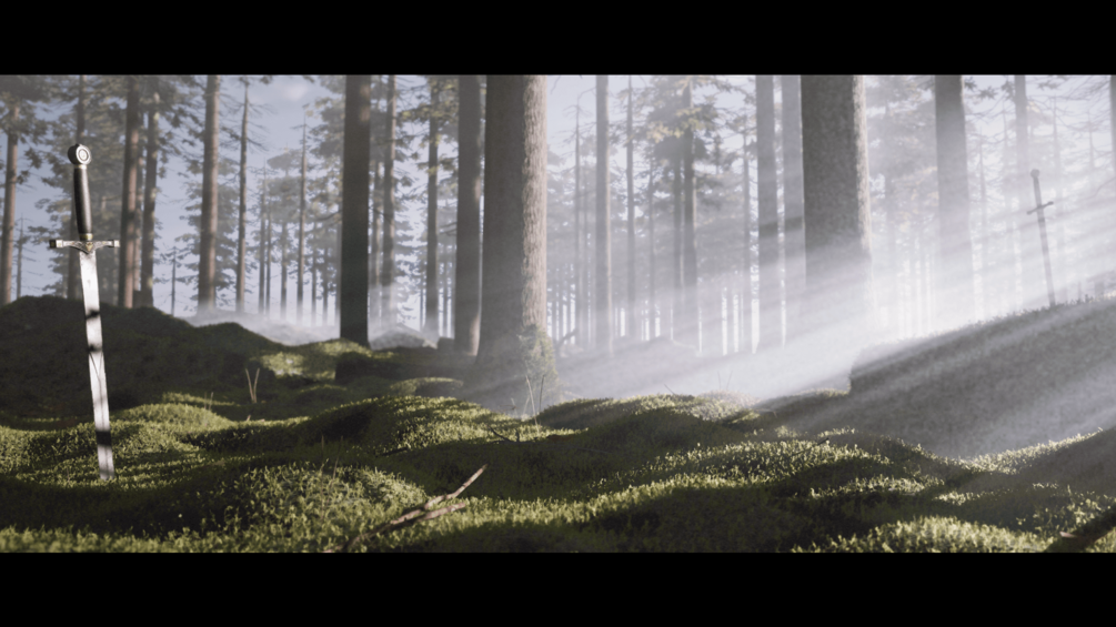 You also receive a full mossy sample environment scene to run around in. The modular moss pieces, trees, and rocks from the pack were used to create the whole scene and it includes the legendary sword in the stone.